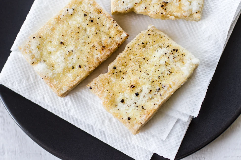 • 14 ounces firm tofu, sliced crosswise into 1/2-inch thick slabs
